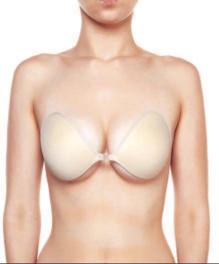 NUBRA Seamless, backless strapless bra. Lightweight fabric with seamed edge. Skinfriendly and reusable adhesive. Front closure for cleavage control.