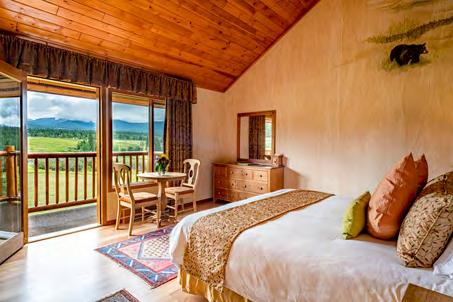 The couple bought the 160-acre property on a whim and turned it from a small homestead into a luxurious boutique ranch defined by log cabinstyle accommodations. They built an airplane runway, a gym, an indoor swimming pool and a stable, and over the years created a range of innovative activities that married their interests of wilderness pursuits in the Cariboo coupled with Thai-based spa treatments and gentle yoga.