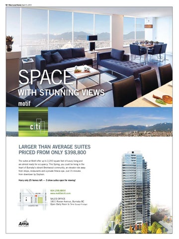 604.298.8800 www.motifatciti.com SALES OFFICE 1801 Rosser Avenue, Burnaby BC Open Daily Noon to 5PM (Except Fridays)