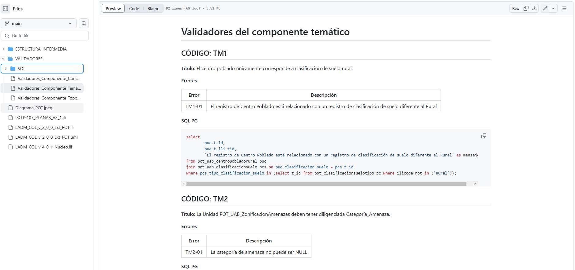 Figura 4: Validadores temáticos aplicables a la información del modelo POT