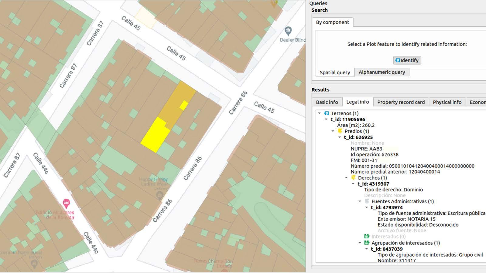 De manera complementaria, el proyecto apoyó la migración de información catastral y registral a LADM_COL-CAT/REG. Este modelo permite estandarizar la información predial y registral e integrarla de manera coherente y alineada con el Sistema Nacional de Información Catastral y Registral (SINIC). La aplicación de este modelo