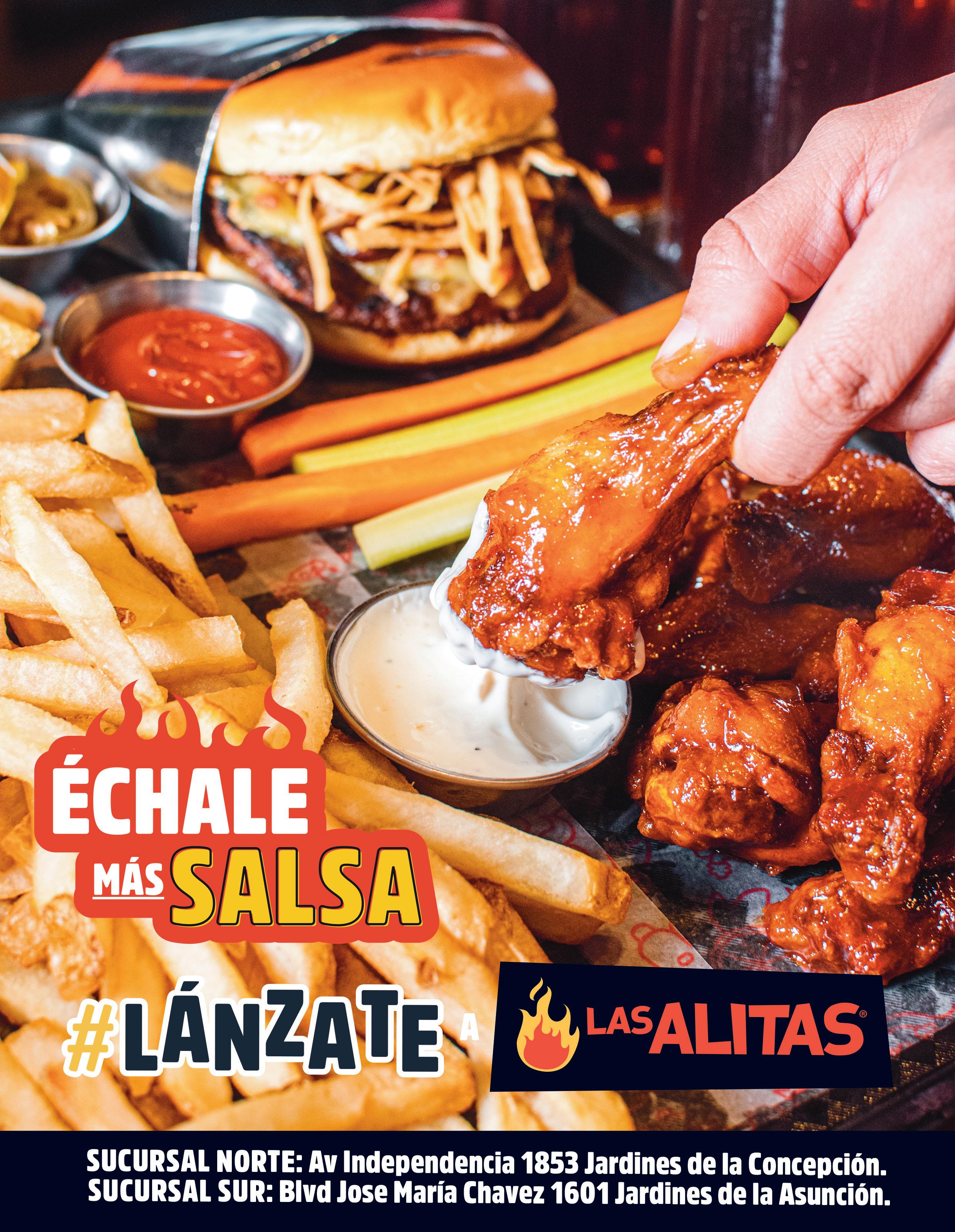 Promoción válida únicamente en consumo dentro del establecimiento. No alica delivery ni Pick Up. Aplica una promoción por persona. No se permite compartir. Se sirve en órdenes de 250gr de alitas o 110gr de boneless con una salsa a elección, 4 bastones de apio en caso de alitas, para boneless 4 bastones de apio y 4 de zanahoria y 130gr de papas de la casa. Se sirve la siguiente orden hasta finalizar la primera. Tiempo máximo de 3 hrs.