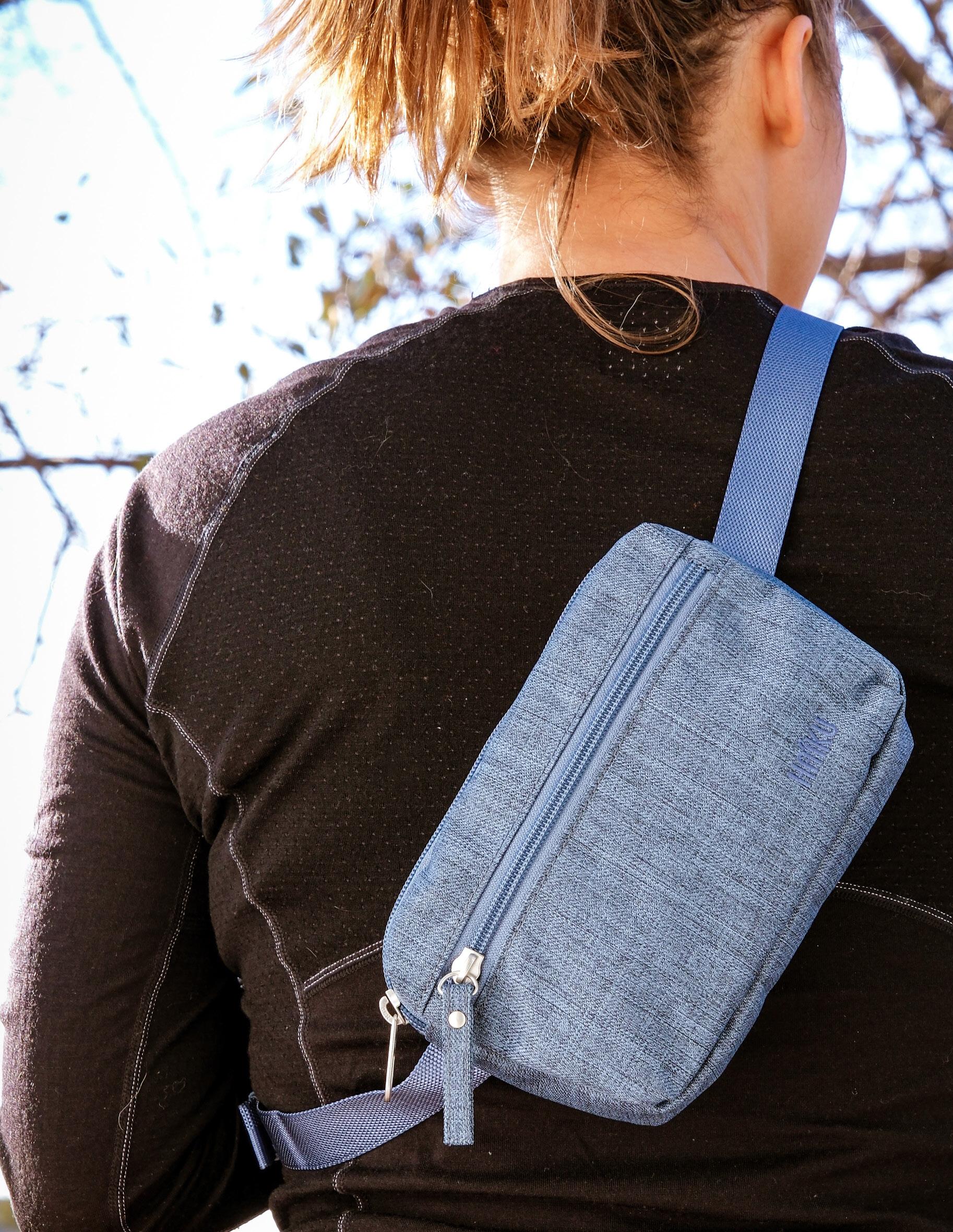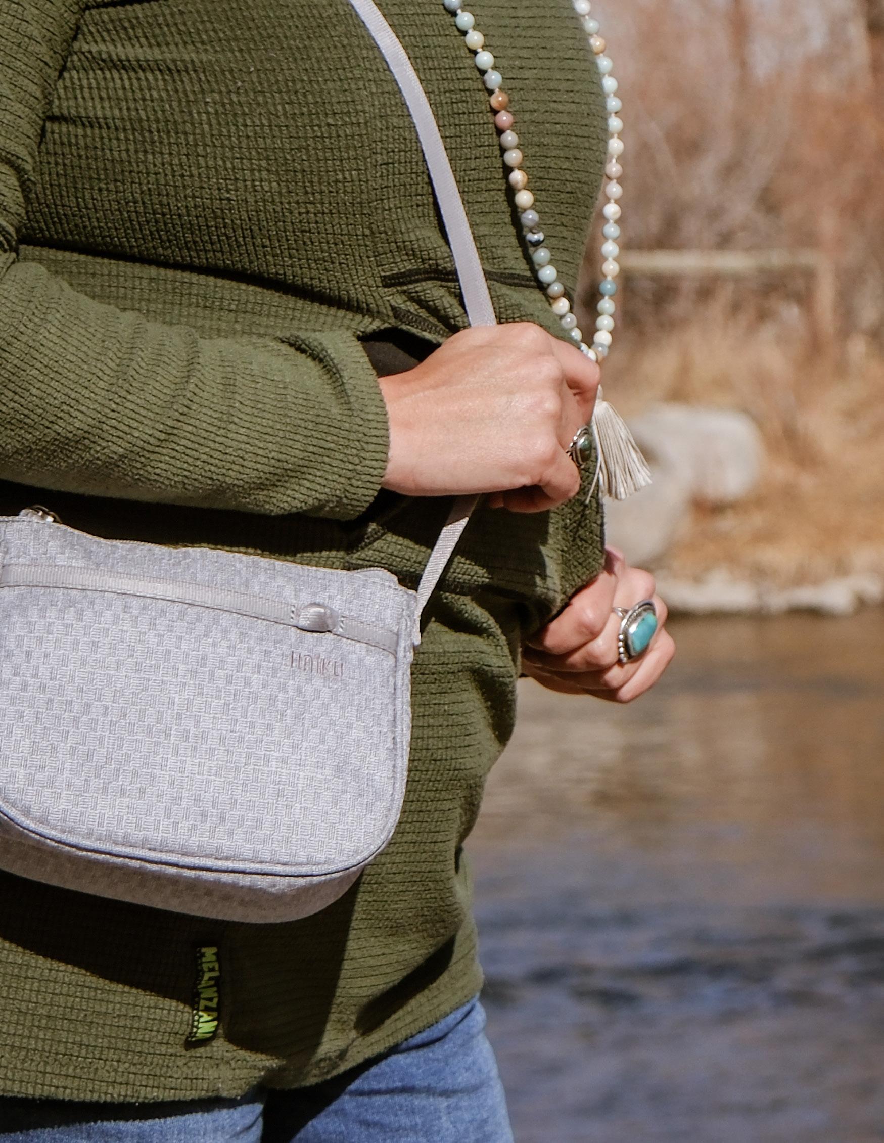Worn on the hip or as a crossbody sling, the Hopper is hands-free perfection. Its roomy main compartment holds everything you need for errands or your morning walk. Its interior zip pocket and RFID-blocking card slot protect your valuables, while the front zip pocket keeps a phone accessible. It attaches with an adjustable quick-release buckle.