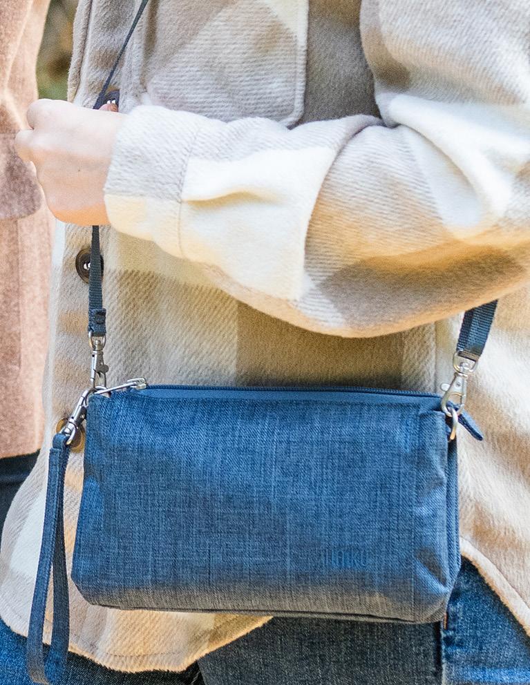 The Endeavor Pouch is a small lightweight travel companion that carries your essentials while allowing the flexibility and organization to keep things secure and accessible. This convenient pouch is the extra pockets you’ve been wishing for and holds your phone, passport, credit cards, cash, and keys, with an exterior slip pocket for quick access. Anti-theft features include an interior RFID-blocking card slot and key fob to protect your valuables. Adjustable, removeable straps allow for several different wearing options that include crossbody, over the shoulder, on your back or chest or simply remove the straps and hold it in your hand or toss it in a larger purse or tote bag.
