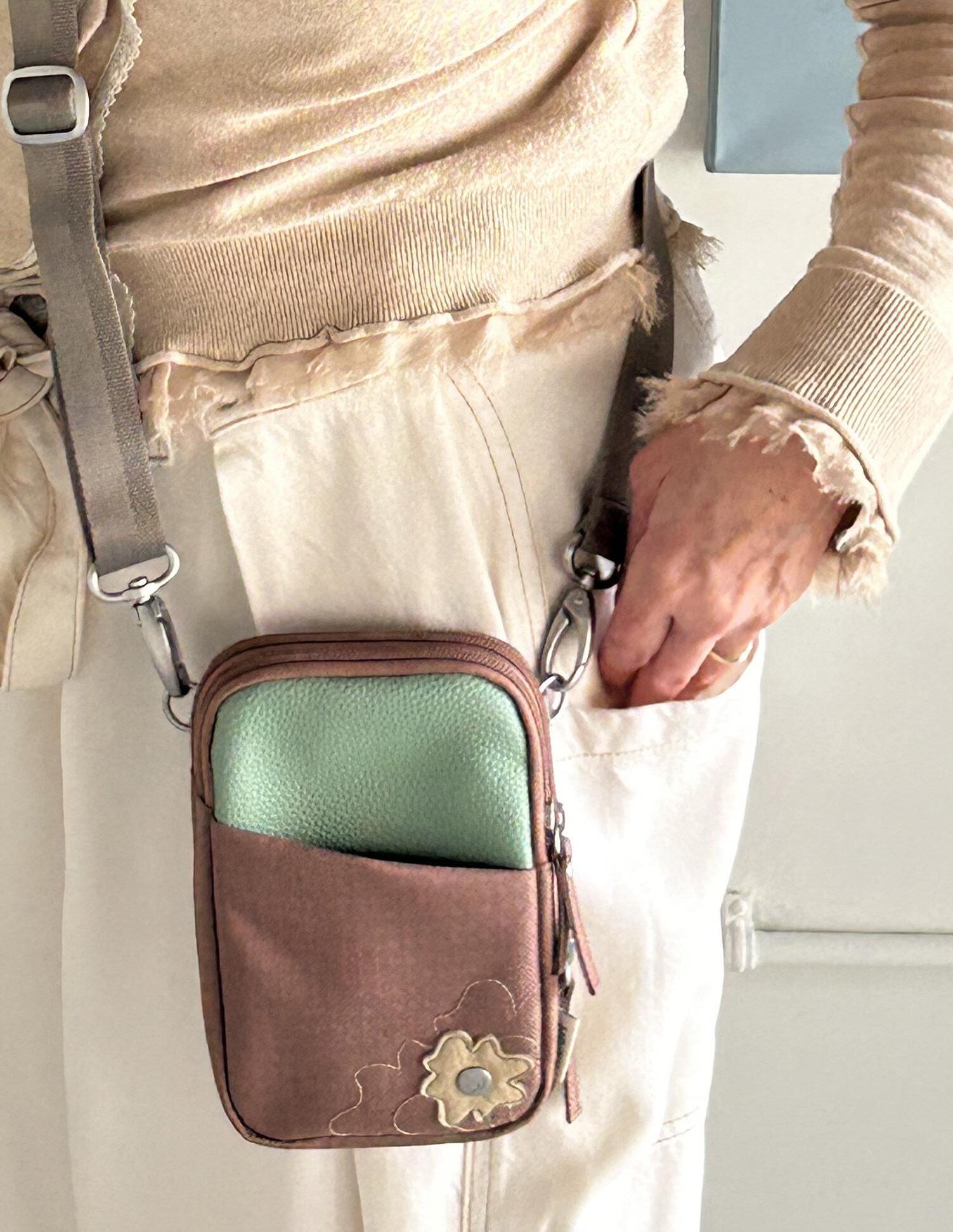 Stylish, with just the right amount of laid-back, the Amble’s roomy interior is organized with a zip pocket, slip pocket, and key fob. The exterior has two zip pockets, including a vertical one for a phone, and two back slip