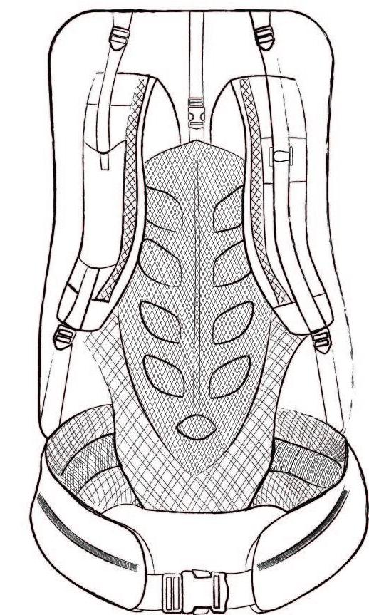 Created with a clear channel down the centre of the back to provide optimal ventilation while being able to carrying a full load in comfort. The design of the foam follows the curves of the back with sternum straps and load lifter straps to pull the pack close to the body and even the weight of the bag.