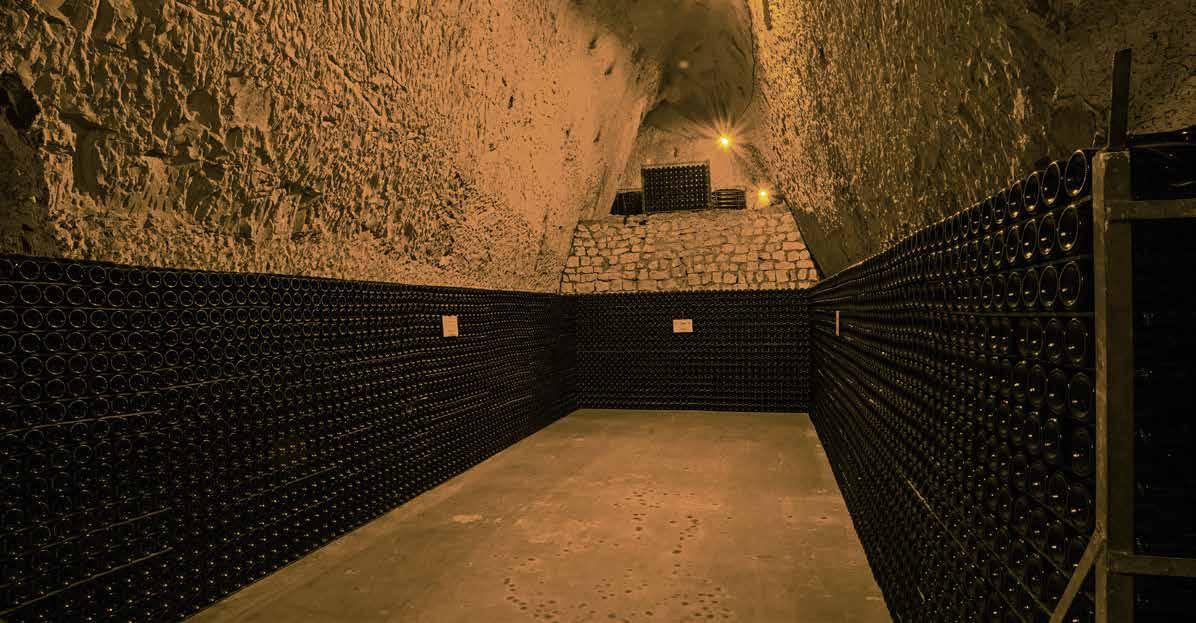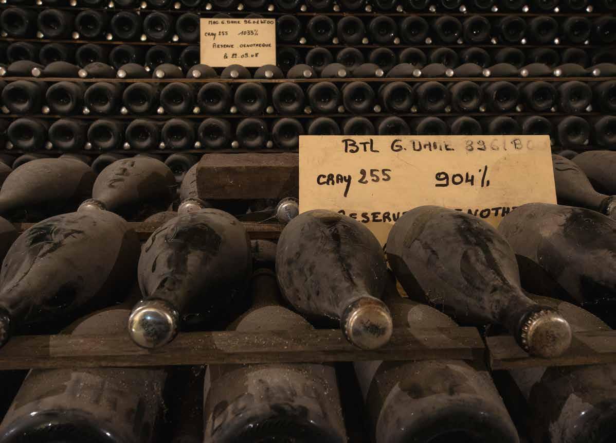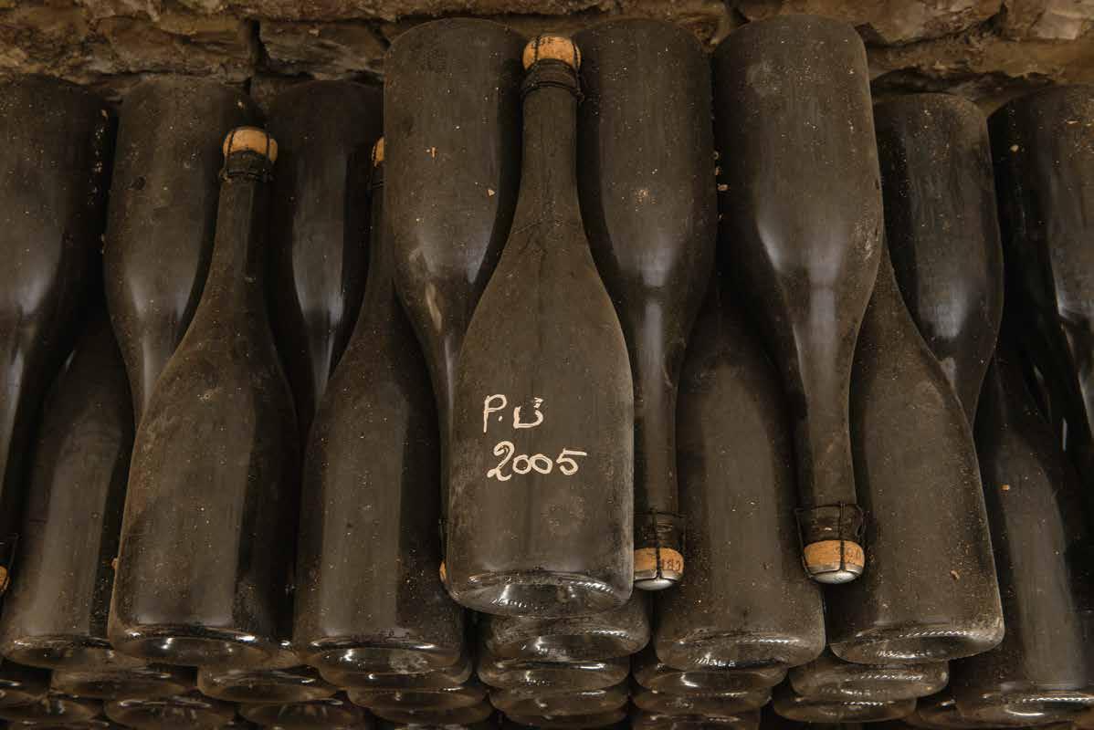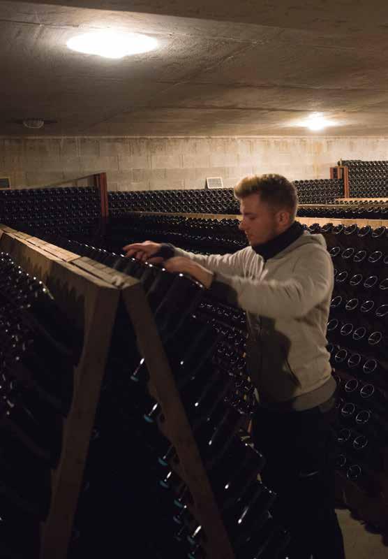 want roestvrijstaal is uitermate electrisch geladen. De botteling is, zonder filtering, eind juni. Behalve de Brut Réserve krijgen alle andere cuvée’s een kurk met agraaf. De consequentie is wel dat zo’n 35.000 flessen ieder jaar weer met de hand moeten worden gedegorgeerd.
