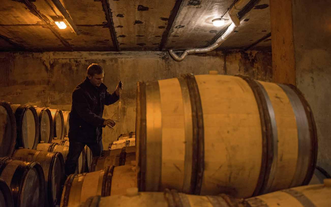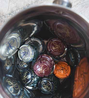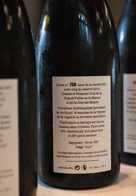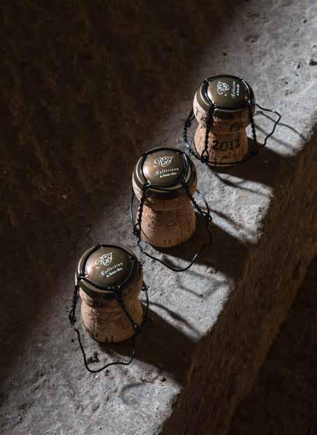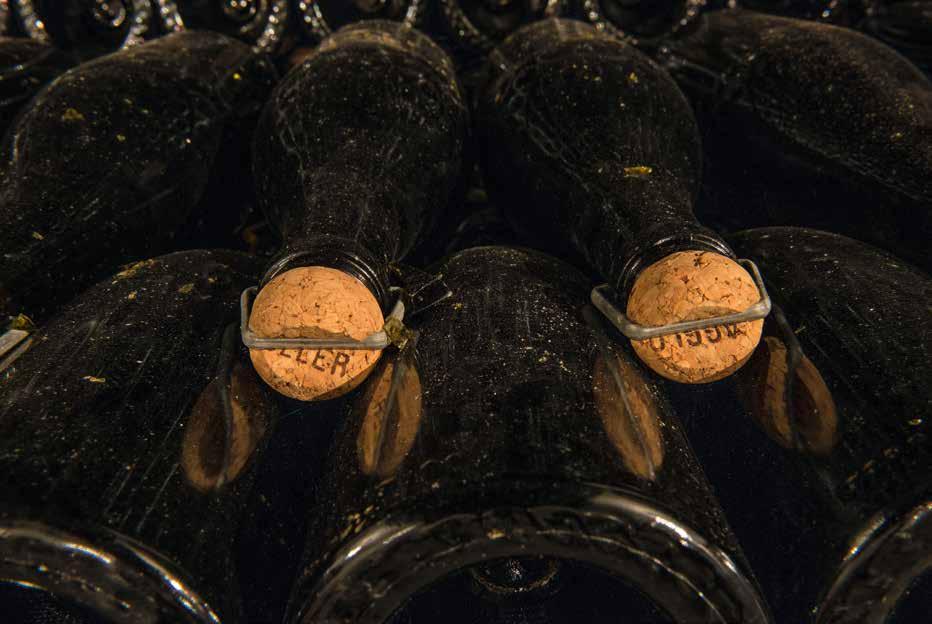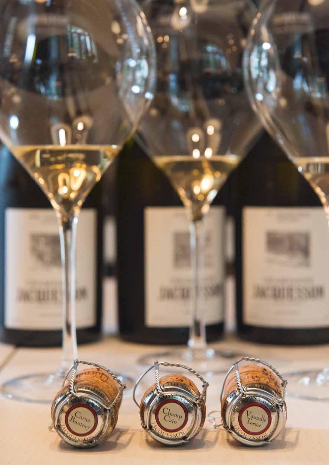 want roestvrijstaal is uitermate electrisch geladen. De botteling is, zonder filtering, eind juni. Behalve de Brut Réserve krijgen alle andere cuvée’s een kurk met agraaf. De consequentie is wel dat zo’n 35.000 flessen ieder jaar weer met de hand moeten worden gedegorgeerd.