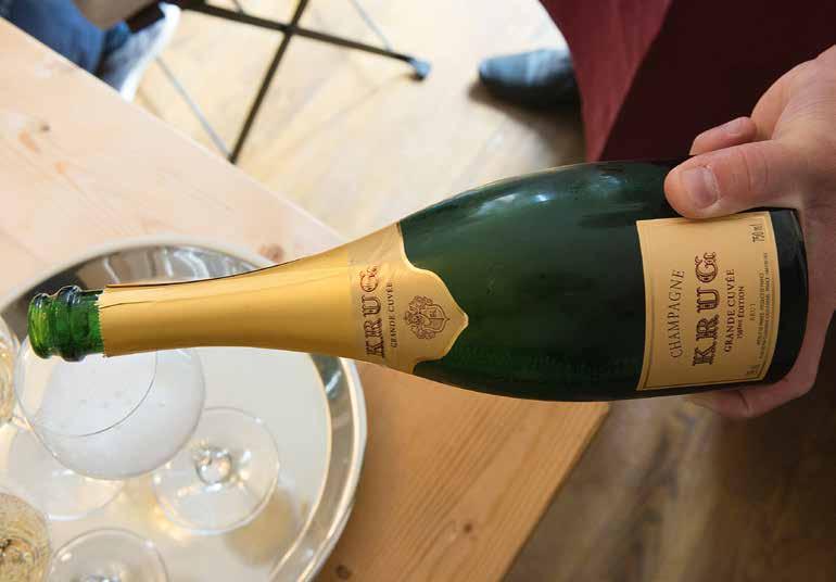 tafelchampagne. Wellicht is het de moeite waard om La Grande Dame voor het serveren de nodige lucht te geven door hem over te schenken in een ruime karaf. Overigens is de 2008, die pas in 2018 op de markt zal komen, samengesteld uit bijna 95 procent pinot noir –2008 is een zogenaamd pinot noir-jaar – en dus speelt de chardonnay dit keer een uiterst bescheiden rol. Spannend.