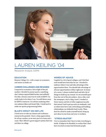 LAUREN KEILING ’04 Research Analyst, ESPN EDUCATION