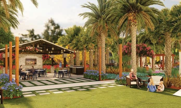 The multi-family community provides its residents with many amenities including a clubhouse pool, yoga lawn, and main amenity park which consists of hammock groves, grills, a fire pit, recreational games, and a dining plaza located under large oaks.