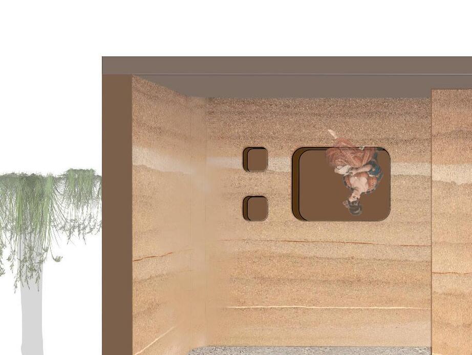 Secluded under the fences, the lower floor inhabits the beer spa, allowing for the most private spaces in the building, and maximizing both the relaxation of the user and the unique experience of soaking in beer botanicals. This space is quiet, dimly lit, and a space for both hotel guests as well as visitors.