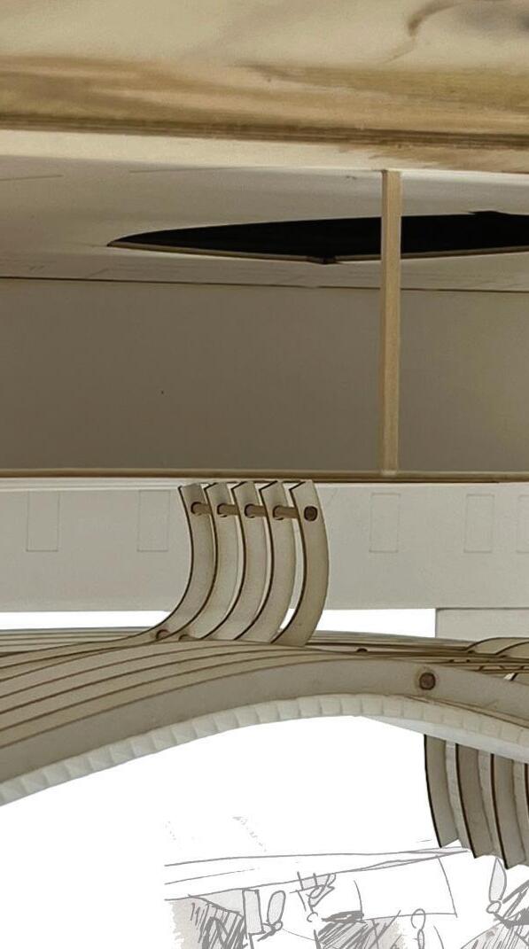 The trusses served as the defining feature of the project, providing rhythm and shelter, allowing the project to exist under it. This example, the standard A-shaped truss, helped to enclose the chapel, and give it a serene nature.