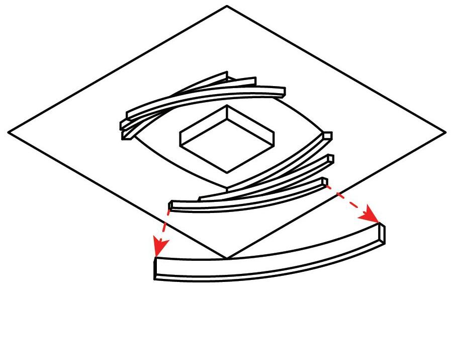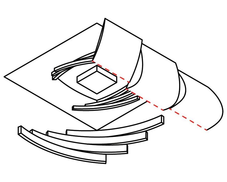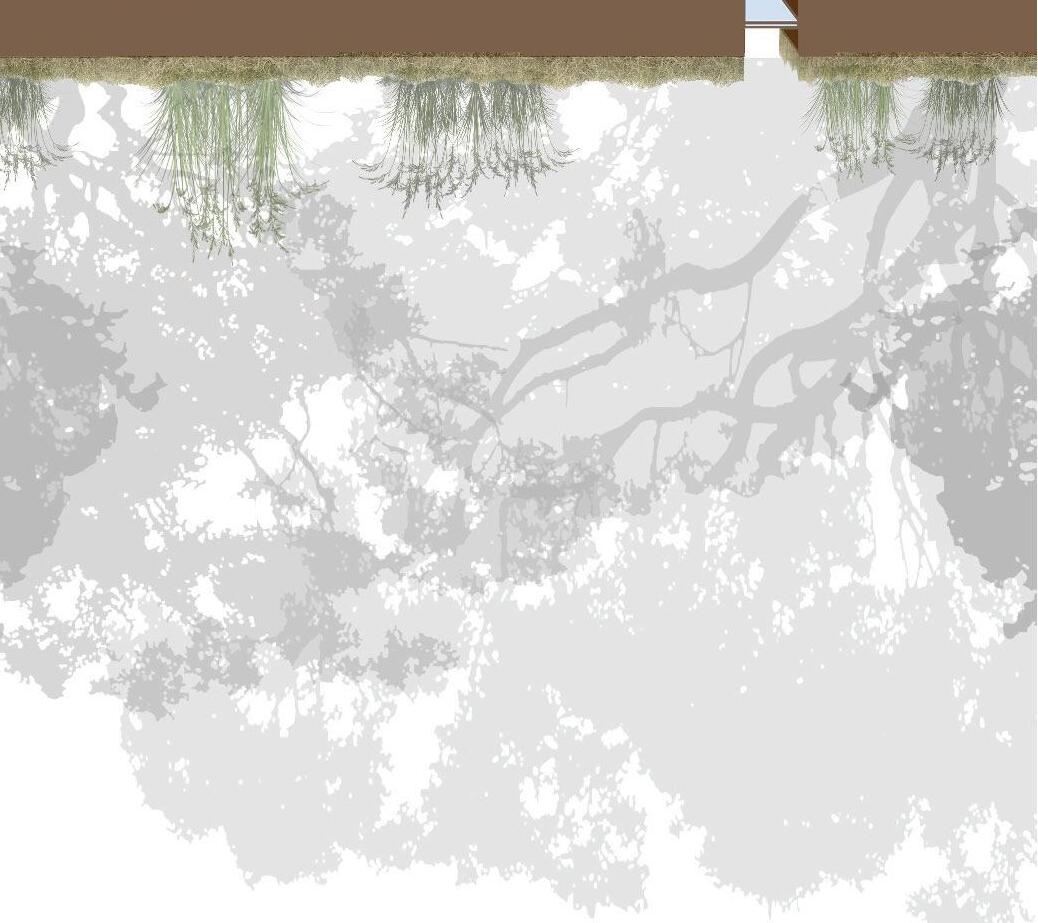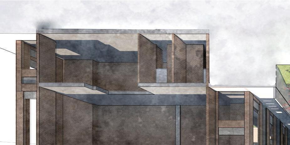 The structure carries itself seamlessly from the ground-plane through the roof by three canopies covered in translucent plastic sheathing, allowing the structure to interact with the street level while still maintaining privacy. The canopies open along the Eastern side of the site to further engage the urban park adjacent.