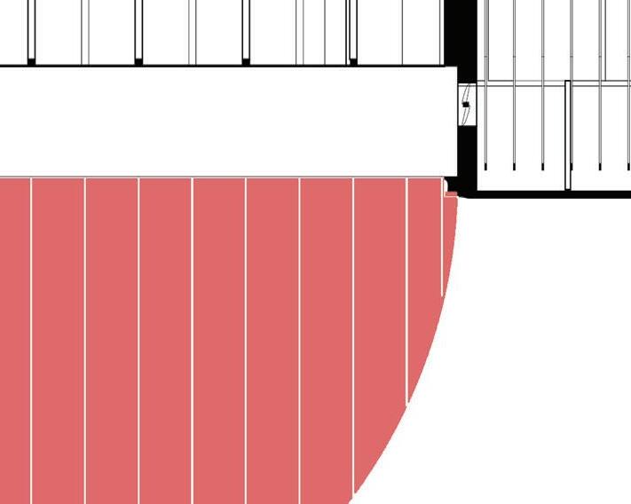 The gallery of the Memorial Hall exists just below the ground plane, making it the most connected space to the surrounding cemetery. The gallery serves as a circulation space as well as a flexible use space for events in the lower hall. The gallery is made possible by the inverted trusses, which lower in the center to create a consistent head height.