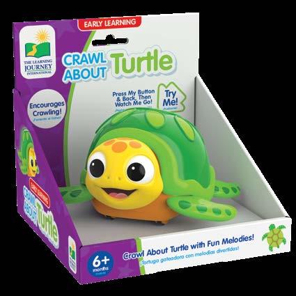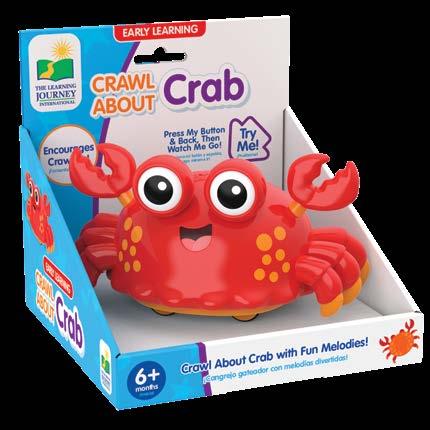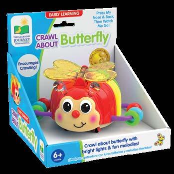 Your little one will wiggle, creep, and inch along as they follow these adorable little creatures. The Crawl About Crab, Turtle, Bee, Butterfly, and Lady Bug will have your little one crawling in no time! The early learning Crawl Abouts wobble and wiggle as they move across the floor with their fun nursery rhyme melodies and bright colorful lights. A simple push on the back sets them in motion. Your little ones will be mesmerized to discover the magic of movement. Requires two “AAA” batteries (included). Ages 6 months - 3 years.