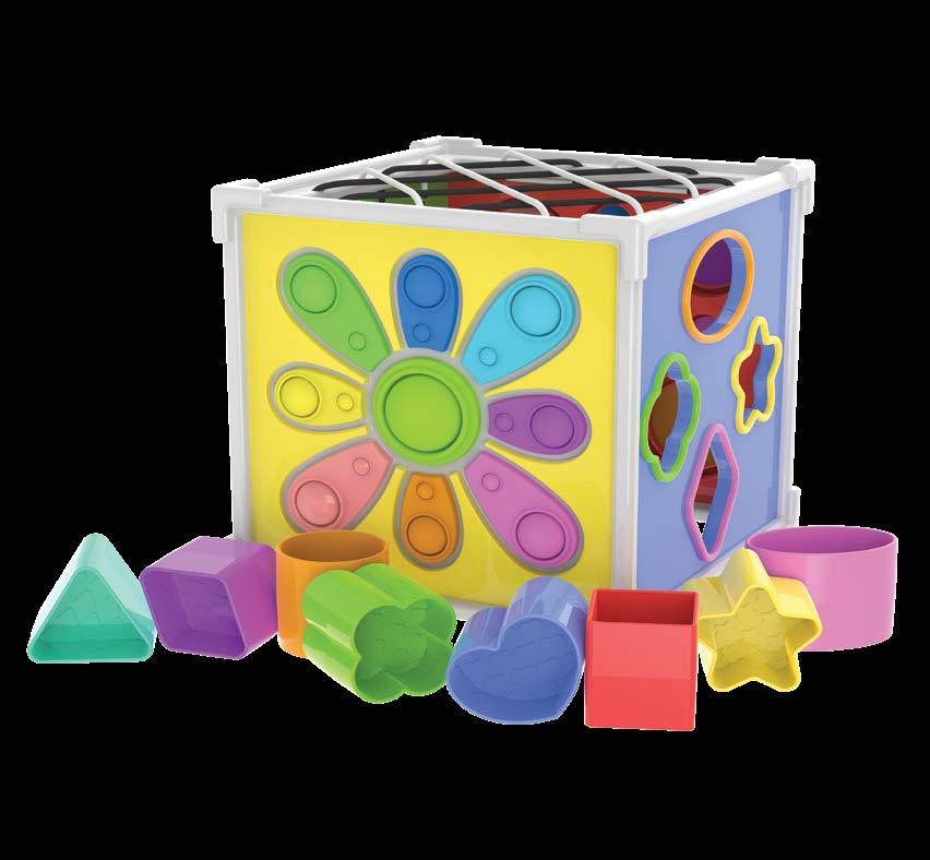 In, Out, Push, Pop, Poke, Grab… This colorful and unique sensory cube provides a diverse amount of activities all in one innovative toy! Two sides feature geometric shape sorters, two sides elastic bands for tactile exploration, and two sides silicone bubble poppers for sensory delight. Pop & Discover Activity Cube is a perfect sensory adventure that babies and toddlers can take with them wherever they go. Ages 1-3 years.