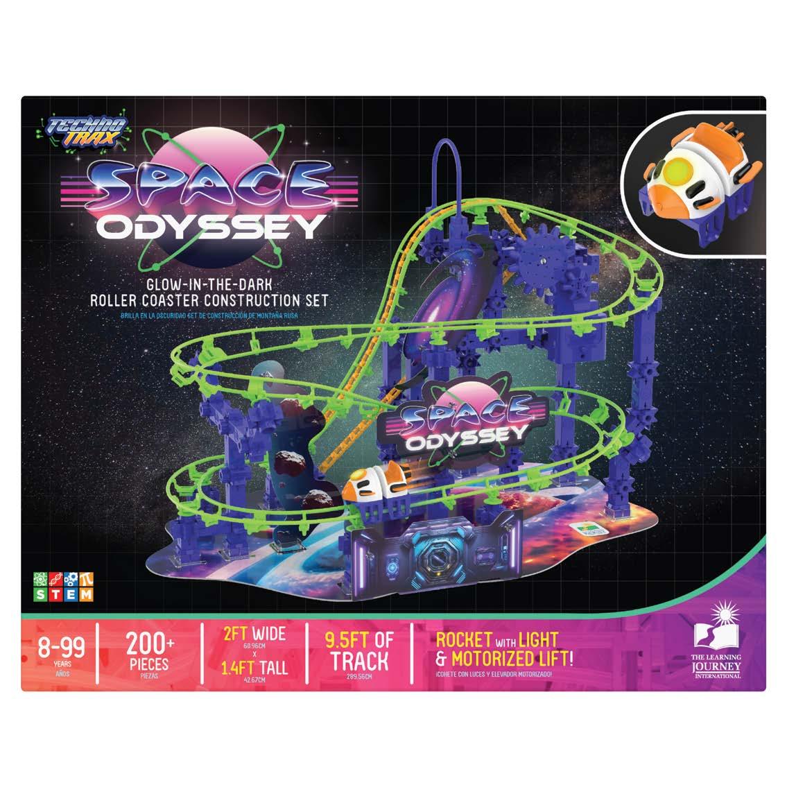 200+ pieces featuring glow-in-the-dark tracks and a light up spacecraft.