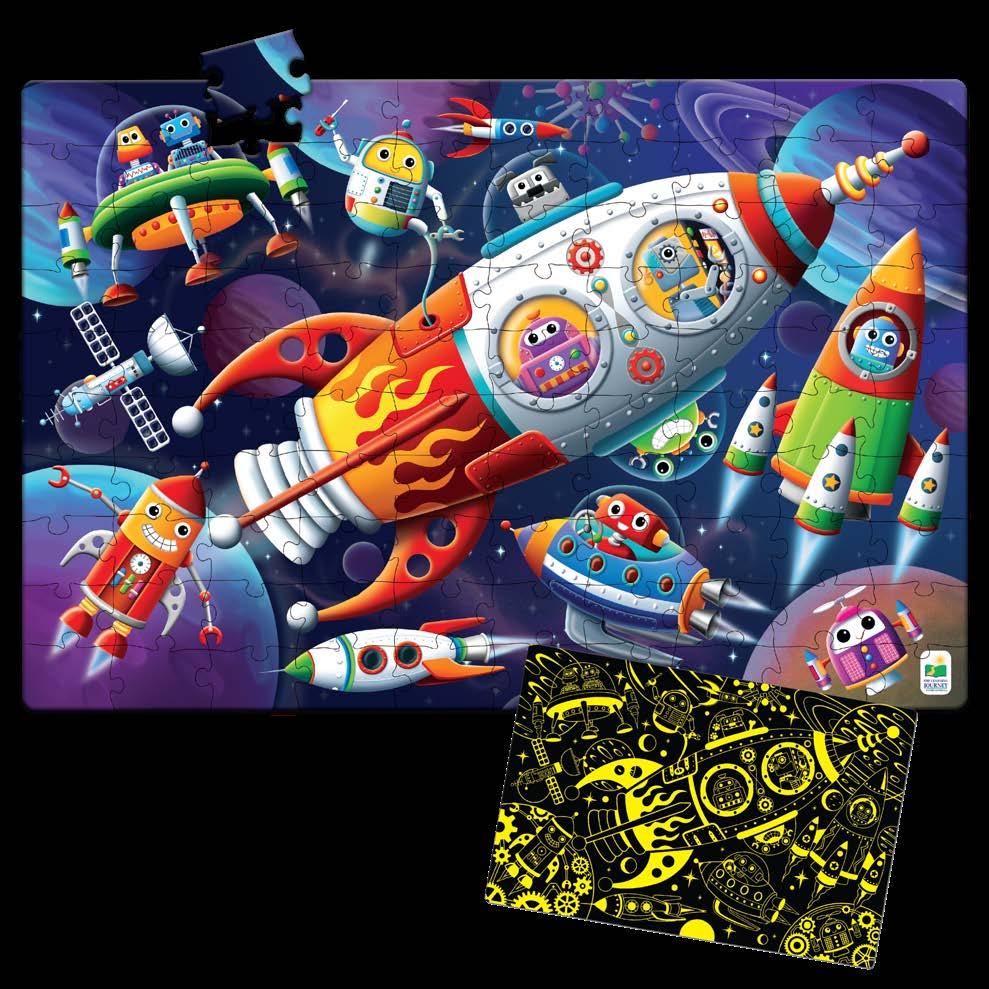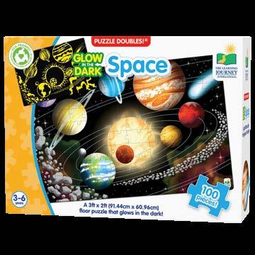 Learning about nature, space and other environments has never been so much fun! After putting together the 100 piece puzzle, turn off the lights and see a surprise as it glows in the dark! Puzzle Doubles! Glow in the Dark puzzles are a fun way to expand your knowledge of different environments. Each puzzle measures a giant 3’ x 2’ (91.44cm x 60.96cm)! Ages 3-6 years.