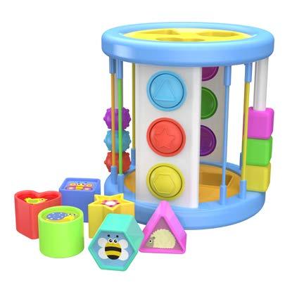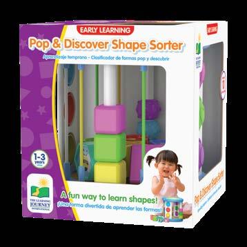 Pop in, pop out, or place shapes through the sortersthis colorful and unique shape sorter provides a bunch of activities all in one sensory activity toy! The Pop & Discover Shape Sorter comes with six geometric shapes for sorting, two sides of bubble poppers, elastic bands to twang, and rubbery textured beads that spin and slide for an extra boost of sensory fascination. Little ones will have lots to grab their attention and keep them learning and exploring. Pop & Discover Shape Sorter is a great sensory experience that babies and toddlers can take on the go as everything stores neatly inside! Ages 1-3 years.
