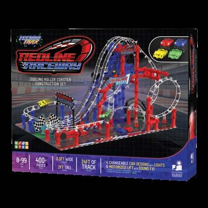 Roller Coasters are mesmerizing for kids of all ages, and the Techno Trax series offers kids a true coaster experience. Young engineers will get to learn the physics of force, motion, and energy as they conduct a series of engineering lessons with this easy to build system. The sets include 150+, 200+, 300+ and now 400+ pieces and step by step detailed instructions in our online product build manuals. Techno Trax sets turn the science of engineering into a fun adventure! These products align with and support STEM (Science, Technology, Engineering, and Math standards). Requires two or three “AA” batteries (not included). Ages 8-99 years.