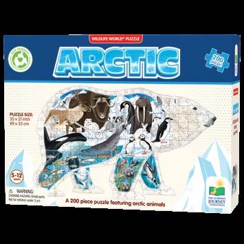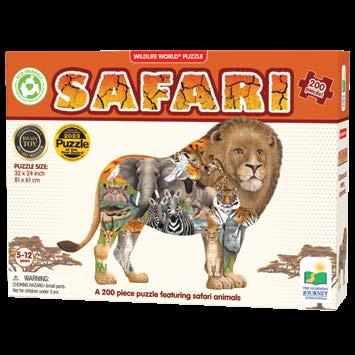 The Wildlife World Puzzle Series by The Learning Journey takes learning about Wildlife to a new level. These unique puzzles, both in shape and content, will have kids learning about natural habitats and more. These 200-piece puzzles will help develop problem solving skills, spike interest, and expand knowledge of different environments. The colors and patterns of the animals are beautiful and fascinating! These puzzles measure approximately 3’ x 2’ (91.44cm x 60.96cm)! Eco Friendly design is made from recycled paper. Ages 5-12 years.