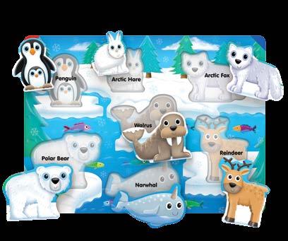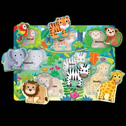 These fun and colorful tray puzzles feature arctic, jungle, farm, sea animals, dinosaurs and space objects. Children will be encouraged to develop different skill sets that will help get them ready for school. Pictures are also printed under the pieces to guide younger children. Each puzzle measures 15” x 11” (38.1cm x 27.94cm). Ages 2-5 years.