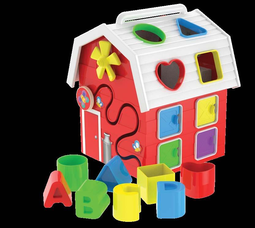Little farmer babies and toddlers will have fun exploring all the exciting activities on the Farm Activity Cube. Watch their surprise when they open little doors, tickle little rings, spin colorful gears, fit the letters into the sorter, and much more. This cute red barnshaped sorter will help develop tactile motor and cognitive skills ‘til the cows come home! Ages 1-3 years.