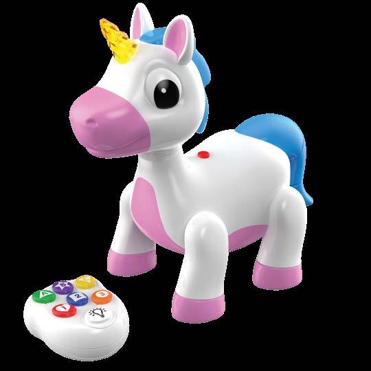 Dance the day away with the Infrared Remote Control Dancing Dino, Unicorn, and Dragon. These whimsical and magical creatures will bust a move and become everyone’s favorite pets. With flashing lights and fun sound effects, these friends will guide kiddos through learning with two play modes – Get Moving! and Let’s Learn! In Get Moving! mode, you can move your pal forward and backward and make it dance! In Let’s Learn! mode, the creature will ask questions about the ABCs, numbers, colors, and shapes. Your child will experience so much fun packed into these smart friends who will teach them and get them moving. Requires four “AA” batteries (included) for the main unit and two “AA” batteries (not included) for the remote control. Ages 2-5 years.