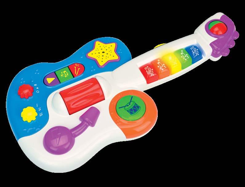 Your little ones will be “jazzed up” by this Little Rock Star Guitar. With multiple play modes and activities, musical talents will be inspired. Little Rock Star Guitar features three groups of music, three play modes, five light up musical buttons, whammy bar, drum button, and more! The fun music and sound effects will have your little one rockin’ for hours. Requires three “AA” batteries (included). Ages 1-3 years.
