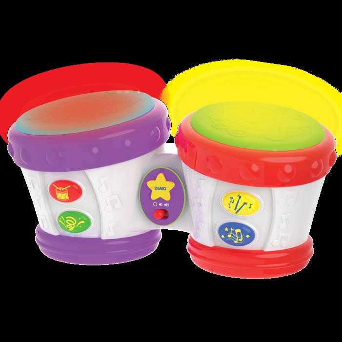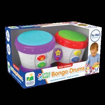 Your little one can create their own “beat” with this interactive set of Bongo Drums! This set of drums is soft to touch, packed with great sound effects, rhythm sections, and built-in demo songs for your toddler to add their own style! Requires two “AA” batteries (included). Ages 1-3 years.