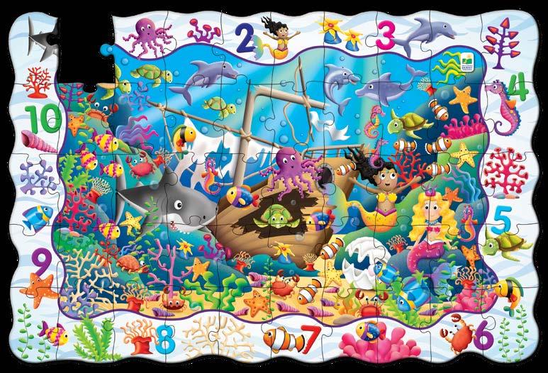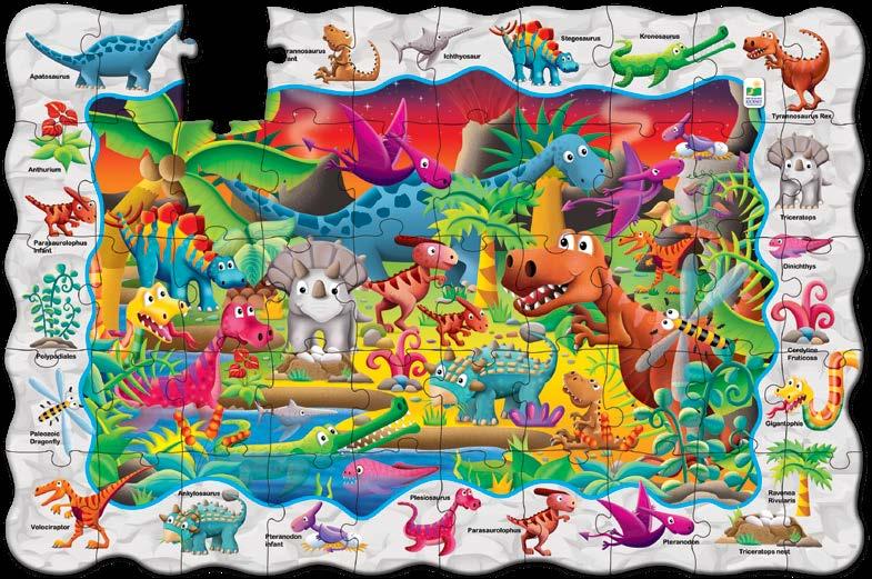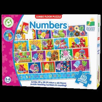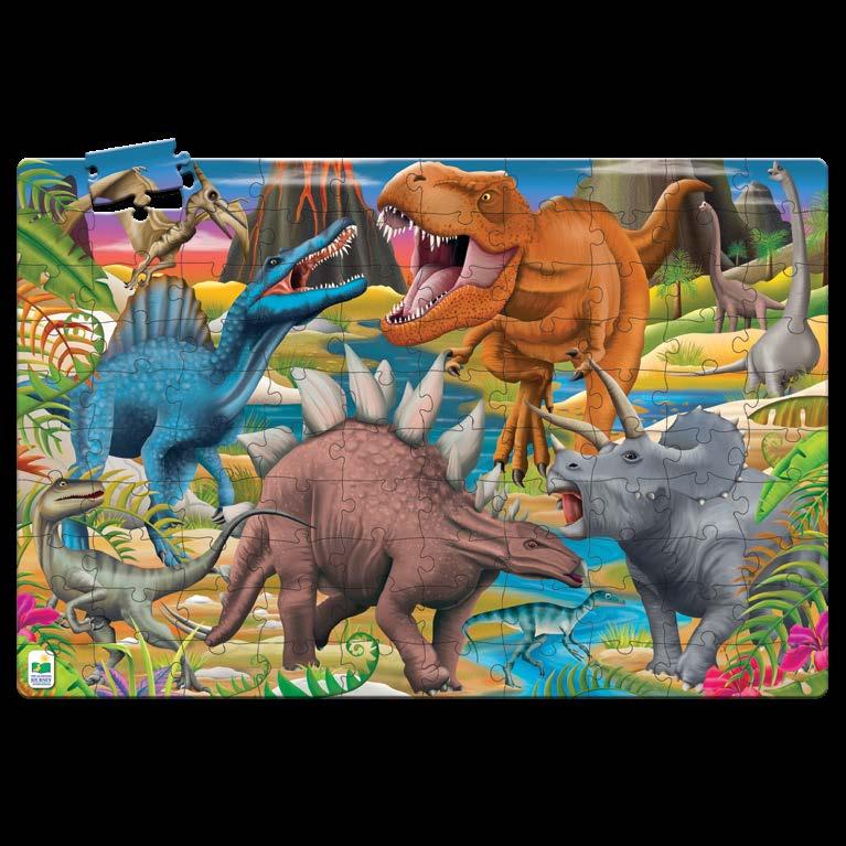 Enjoy two fun-filled playtime activities in one! Each Find It! product combines a puzzle and game into one highly educational, interactive learning experience. The Find It! series teaches children about dinosaurs and 123s. First assemble the puzzle, then play the game by finding the images on the puzzle border within the puzzle image. Each 50-piece puzzle measures a giant 3’ x 2’ (91.44cm x 60.96cm)! Ages 3-6 years.