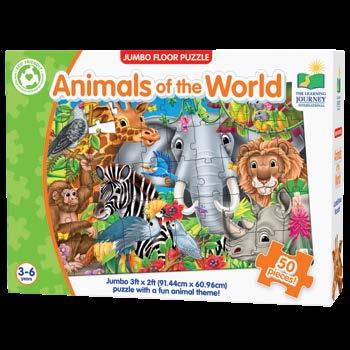 The Jumbo Floor Puzzle series are large floor puzzles that introduce children to basic concepts in a fun way. Each Jumbo Floor Puzzle features very bright and colorful illustrations that encourage parent-child interaction about the pictured objects. Each puzzle has 50 pieces and measures 3’ x 2’ (91.44cm x 60.96cm)! Ages 3-6 years.