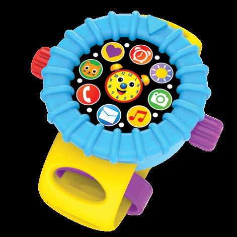 Let’s get busy and learn all the time with the On The Go Telly Smartwatch. This pretend smartwatch looks like the real thing with a light up screen, easy to grasp band, and lots of activities for your little one to explore. Press the side buttons for songs, lights, and sounds. The toggle switches, turn dial, and clacker bands provide tactile activities that strengthen coordination and small motor skills. Requires three button cell (AG13 or LR44) batteries (included). Ages 3 months - 4 years.