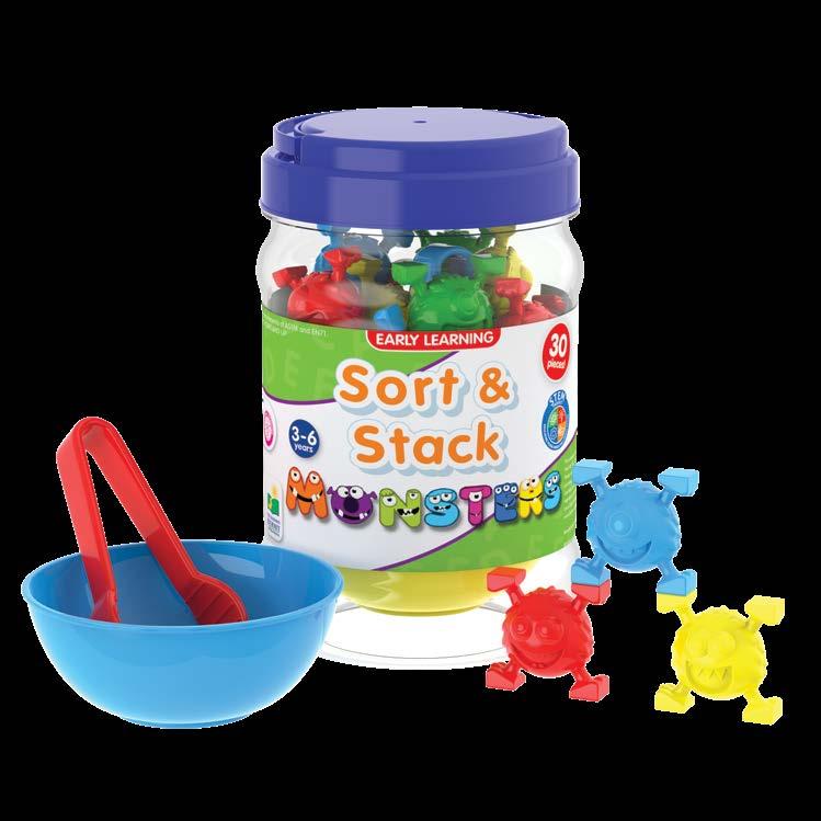 You can’t beat a jar full of lovable monsters! The Sort & Stack Monsters set includes 24 multicolored monsters, four colored sorting bowls, and two colored tongs to help young ones develop those fine motor skills. Sort by color, sort by monster type, or have a blast seeing how high you can stack your monster friends without falling down! Creative endless fun is waiting for your young ones with the Sort & Stack Monsters! Ages 3-6 years.