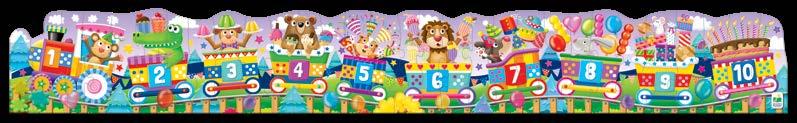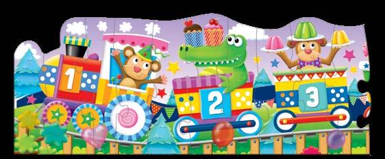 Puzzle Doubles! ABC & 123 Trains box includes two five-foot (152.4cm) long, 30-piece colorful cargo train puzzles teaching the alphabet, counting, and number recognition. Ages 3-6 years.