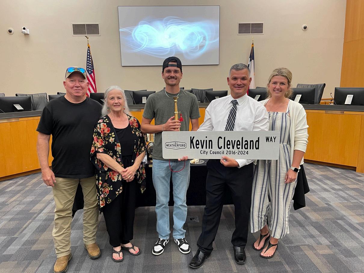 As we enter the summer season, there are no shortage of things to be grateful for and excited about here in Weatherford I would like to take a moment to express my heartfelt gratitude to Councilman Kevin Cleveland for his years of dedicated service His commitment and contributions have significantly shaped our town, and we wish him all the best in his future endeavors Thank you, Councilman Cleveland, for your tireless work and unwavering dedication