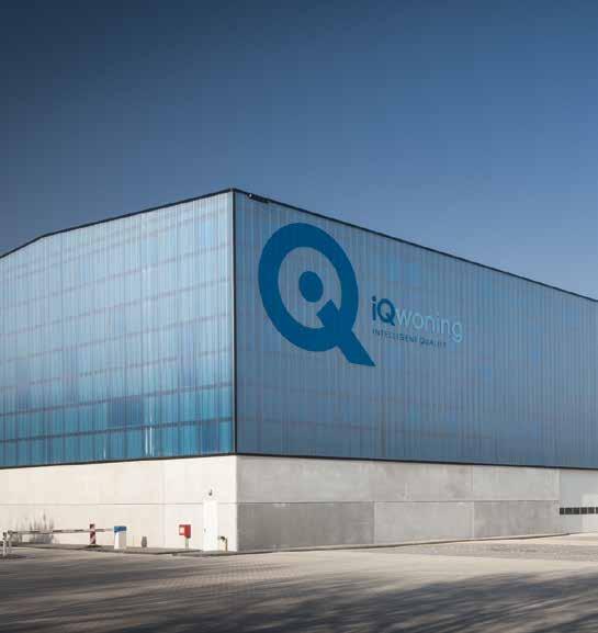 De iQwoning fabriek is gevestigd in Weert in een fabriekshal met een oppervlakte van 20.000m2. Hoogwaardige betonnen elementen vormen de basis van de woning. De afbouw (aanbrengen van trappen, binnenwanden, keuken, tegelwerk, sanitair, bedrading en leidingwerk) vindt in de fabriek plaats. Metselen van de buitenmuren en leggen van de pannen gebeurt in de Wielewaal.