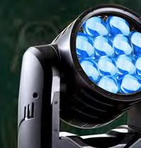in the series. At 4.5kg, it has been designed for applications with limited space. The 8Z comes with an 80W RGBL LED and emits up to 1,800 lumens thanks to GLP’s patented iQ.Gamut colour calibration. The compact housing (175mm x 175mm x 249mm) allows it to be used in a variety of applications, and the 132mm Fresnel lens reportedly ensures an excellent light image. Thanks to the motorised zoom, powerful 8° beams are just as possible as homogeneous washes up to 55°.