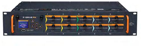 AIMED AT simplifying the design, installation and maintenance of architectural and commercial lighting, ETC has introduced the F-Drive RX, a centralised LED driver system. The 2U rackmounted unit can drive constant current or constant voltage LED fixtures using standard Cat6 cabling, removing the need for high-voltage conduit and reducing labour costs. The system features 10 hotswappable output cards with a total output capacity of 2,800W, paired with a 1U power supply available in 1,800W or 2,800W versions. It supports DMX or sACN control, integrates with ETC’s Concert software and provides an onboard user interface for straightforward configuration. UL 924 compliance allows integration into emergency lighting systems, while output card options extend to Constant Current, Constant Voltage, Fade to Warm and the forthcoming Navis Chroma family. Alongside the launch of F-Drive RX, the manufacturer has released Eos v3.3, a free software update for its Eos Family of entertainment controllers. The update introduces Expansion Processing, enabling productions to divide workloads across multiple devices for scalable output and synchronised multi-