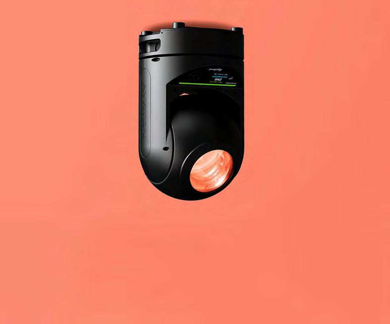 while the fixture’s 360° pan and 270° tilt add dynamic movement options. Optimised for both live and broadcast use, the AZOR SP2 IP includes adjustable PWM frequencies up to 25kHz for flicker-free camera performance. Control is offered via DMX512, RDM or wirelessly through an integrated