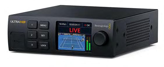 transmit directly from Blackmagic Design cameras (Studio Camera Pro, PYXIS, URSA Cine and URSA Broadcast) and send video pointto-point between remote locations via Ethernet or phone connection using mobile data. A 12G-SDI reference input can connect SDI tally, camera control plus talkback for backup to the encoder. Both the front and rear panels feature USB-C connections that can be used for phone tethering but, should the internet fail, the Streaming Decoder will automatically switch its internet connection to use a connected phone.