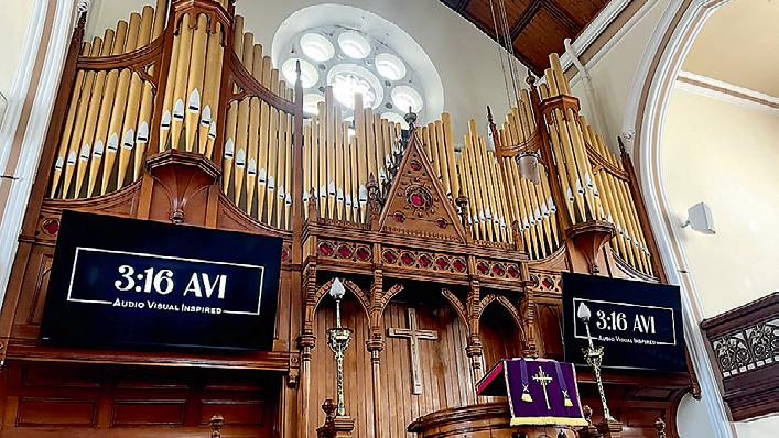 video setup as we were using my personal equipment to support the services up to that point. Our only addition in the last year has been the installation of the Ampetronic/ Listen Technologies Auri solution for hearing assistance. This has been very well-received by the congregation and found to be much easier to use, plus it’s been an amazing improvement in the sound quality that they receive.” While no further upgrades are currently planned, thoughts will soon turn to replacing the video projection system that has been in place for about 15 years.