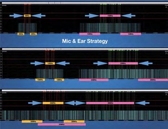 mics as closely together as possible (at least 600kHz apart) and your ears as well. The bandwidth of that cluster essentially adds itself to directly above and directly below the cluster bandwidth. The idea here is to keep the clusters far enough apart as not to overlap. Definitely keep this in mind when planning new wireless purchases (see Figure 2).