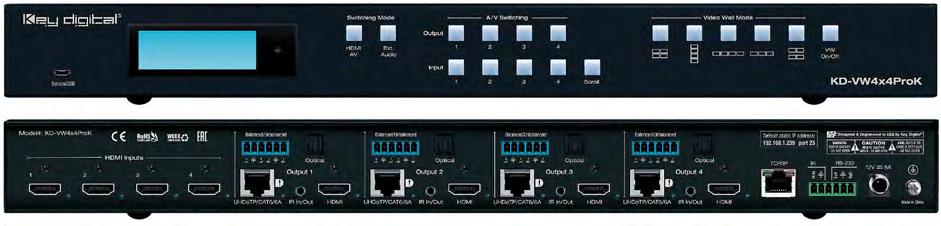 ports, which are limited and the system architecture not expandable. In this case, whenever physical ports – either input or output – are exhausted, multiple Ethernet switches can be connected to expand and scale up the number of ports as much as is needed. An AV-over-IP system architecture requires an encoder for input sources and a decoder for output displays, and several system designs require a network controller connected to Ethernet switches as well. All configurations of the equipment including input preferences, signal routing and advanced processing