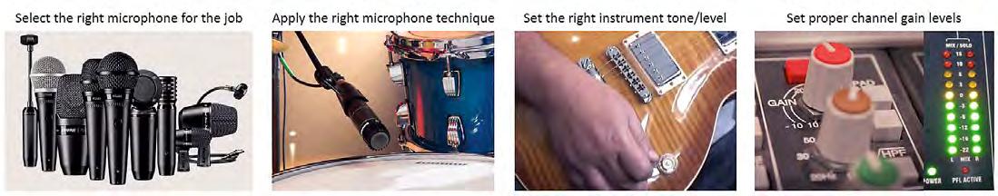 complicated when you consider that the acoustic drums already require you to mix eight or more channels. What then is the right tone and balance between the snare, kick, toms, hi-hat and cymbals?