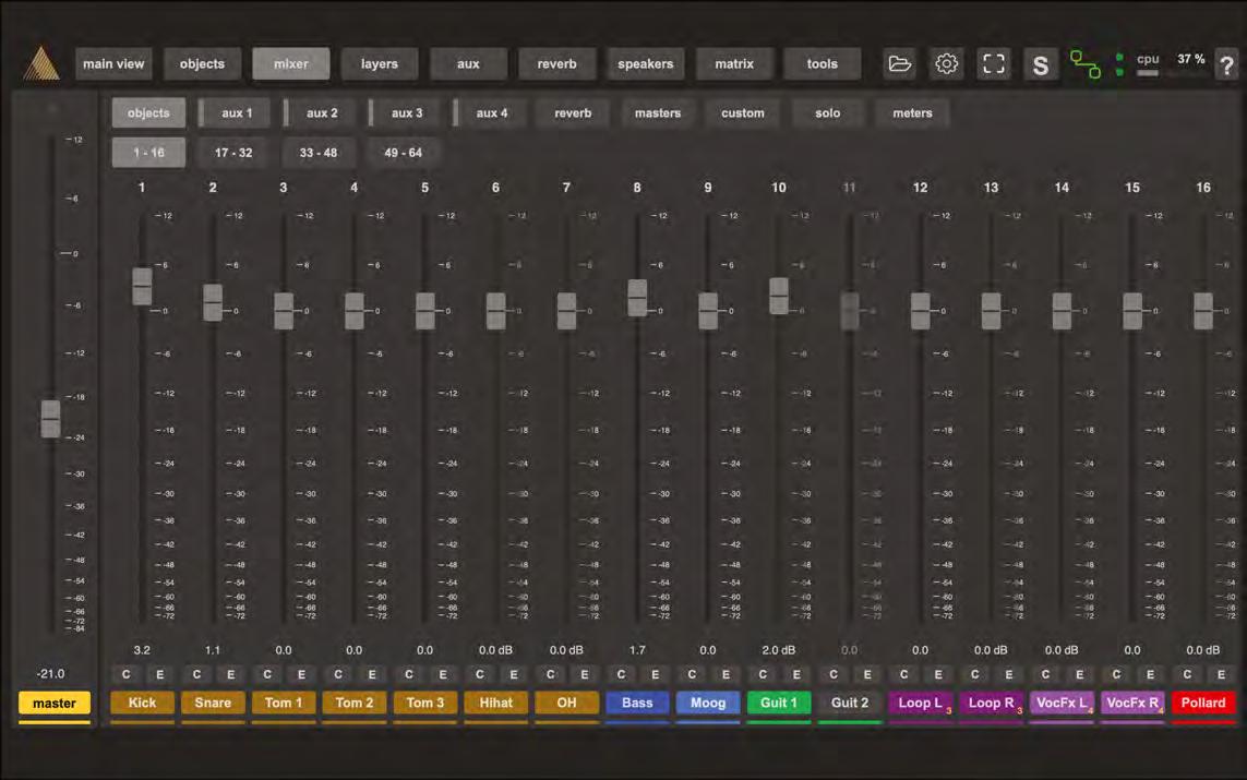 The Fletcher Machine Remote software offers an easy-to-use yet complete set of mixing functionalities, including EQ, compression, auxiliary sends, and much more.