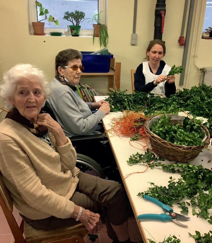De Gaardegrupp huet fir Chrëschtdag d’Adventskränz dékoréiert, d’Hochbeeter fir d’Fréijoer preparéiert, fir Pällemsonndeg de Pällem gebonnen an och de Meekranz gebonnen