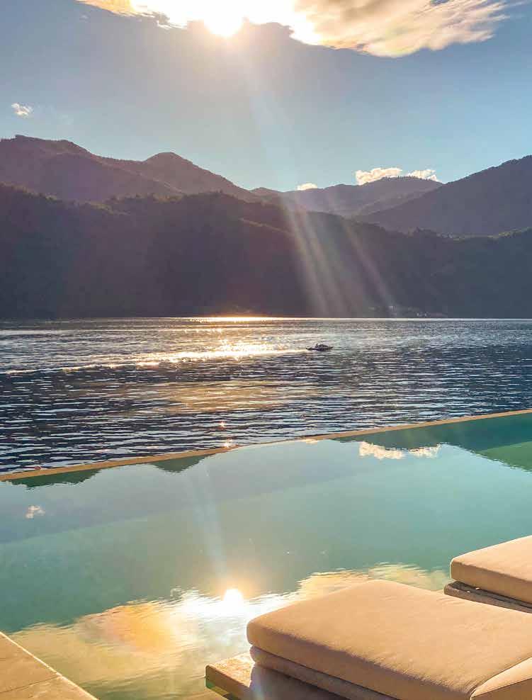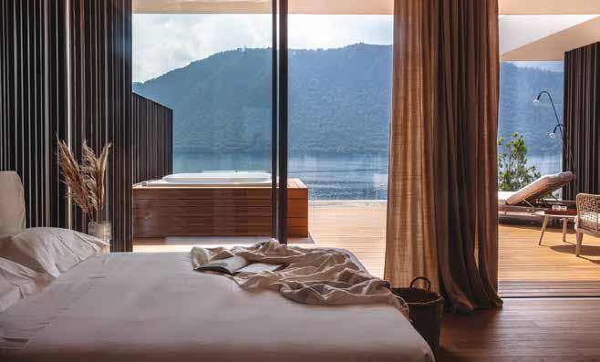 The hotel, in addition to the 54 rooms all overlooking the lake and decorated in classic style, boasts artistically designed common areas, 3 restaurants with different concepts, a panoramic heated swimming pool, and a 500-square-meter private pier.