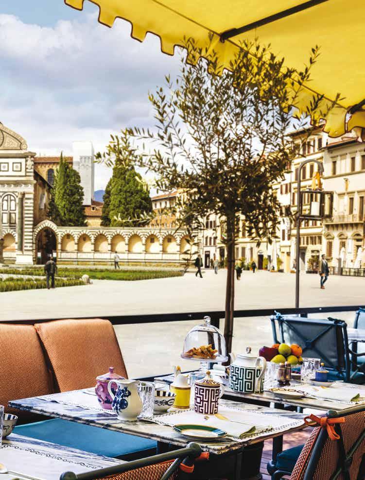 The Place Firenze aims to trace a new and original Italian Hospitality and to become a reference point for travelers looking not only for a place to stay, but an elegant “access key” that allows them to enter intimately into the life and the folds of the city, connect with its people and share moments of enrichment and knowledge. The 20-room hotel with meticulous attention to detail and person-to-person service, stands in the historic square of Santa Maria Novella, overlooked by the stunning al fresco space “The Terrace”, designed to be an urban all-day meeting venue. Inside it is by Chromatic choices in faded tones of green and textiles styled in strong, contrasting colours, including duckbill yellow and brick red. Shared spaces have been redesigned so that sightlines connect rooms embellished by cozy fireplaces and reading corners, defining a unique syle of hospitality. Finally, “The Kitchen & The Bar” with the new, sleek restaurant, whose tables are lined by a gallery of mirrors, offers the sincere and refined cuisin of Chef Asso Migliore and an intimate and stylish American Bar.